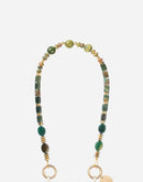 Jaen semi-precious stones green pearls phone chain, 40 cm long, clips onto our ring cases or our universal adapter with its rotating carabiners. Its plus points? Its engraved LCF medal, its semi-precious stones.