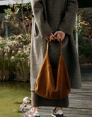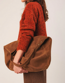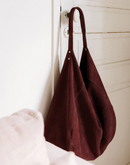 Split leather tote bag with hand/shoulder strap, plus cotton lining, a patch pocket and zipper closure that makes it softer and easier to use.