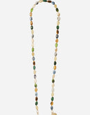 Polly phone chain in multicoloured beads, 120 cm long, clips onto our ring cases or our universal adapter with its rotating carabiners. Its plus points? Its engraved LCF medal, its multicoloured stones and their play of light.