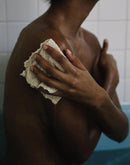 Soak your cloth in water until it feels soft and pliable—the first time will need the longest dip. Gently sweep it over your skin in a circular motion, either on its own or with soap, and when you’re done, let it dry out completely to prolong its life.
