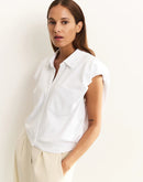 This elegant jersey blouse is made from a soft, fluid fabric and features a loose fit. Designed with a classic collar, button closure, and a patch pocket on the chest. The shoulders have a subtle puff effect for a feminine touch. A versatile piece that pairs effortlessly with any outfit.