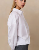 This stylish poplin blouse is crafted from smooth cotton and features an oversized fit. Designed with long sleeves, a classic collar and button-down closure. The subtle pleat details at the front create a refined silhouette. Perfect for both casual and business styling.
