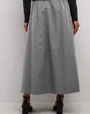 Ideal for daily wear, this skirt features an A-shape design, providing a flattering silhouette. The elastic waist ensures easy wear, while the full-length further enhances its style appeal. Made from a nylon material.
