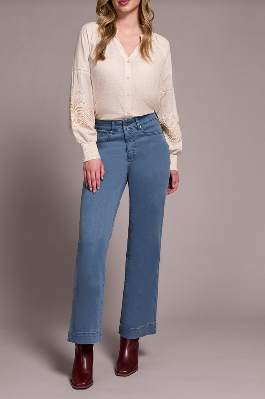 - These high-rise, straight-leg jeans blend classic design with modern appeal. Featuring back darts for subtle shaping and a 5-pocket layout, they deliver a clean, stylish look that never goes out of style.