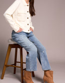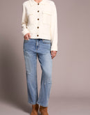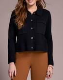 A seamless blend of laid back comfort and structured shape, this collared sweater cardigan puts forth a sophisticated style that's easy to wear. It features a long-sleeve design, faux horn button closures in the front, and double knit jacquard fabric that's soft and smooth.