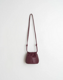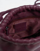 • Bag with gathered structure in bovine leather • Handle with knots • Dimensions: 19 cm x 18 cm x 12.5 cm • Handle: 119 cm x 0.8 cm