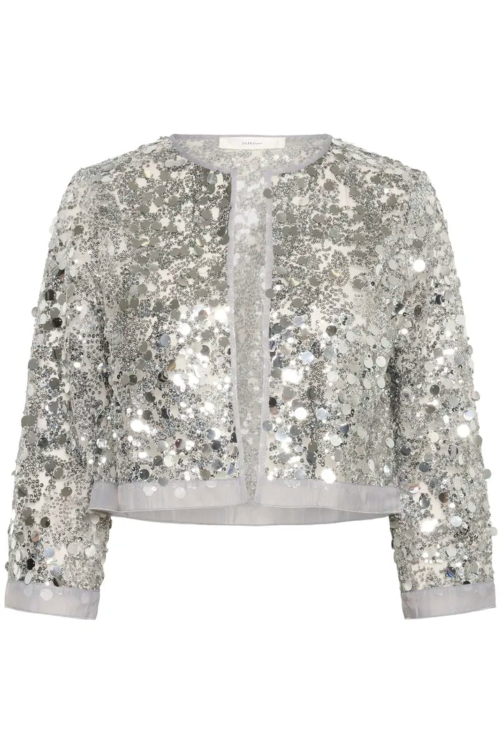 This sequin cropped jacket is tailored with a relaxed fit, round neckline, and open front design. The shimmering surface and long sleeves create versatile style for evening events or elegant layering, offering both comfort and ...