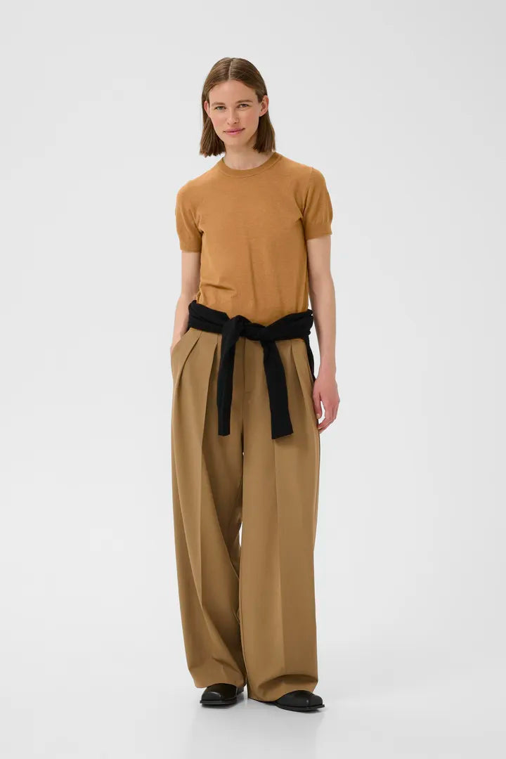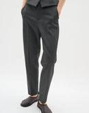 Tailored trousers offer a modern slim fit and an ankle-grazing length, perfect for versatile office or casual wear. Features pressed front creases, belt loops, and comfortable waistband for all-day ease.