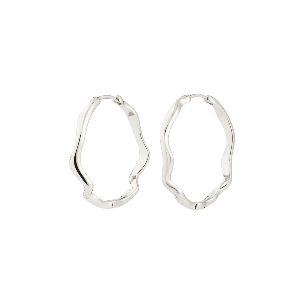 The LARKIN earrings by Pilgrim feature a wavy,freeform silhouette - a fresh take on the classic hoops. The gold-plated or silver-plated wavy hoops have a minimalist yet impactful design that beautifully catches the light and cr...