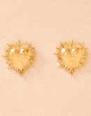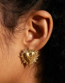 Two bold vintage-inspired radiant heart earrings, with a hammered heart centerpiece and intricate sunburst design.