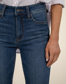 - Transition from day to night in these bootcut jeans sporting flared hems and a versatile blue wash. Designed with our Fab AB front pocket technique that is flattening, slenderizing and provides comfort.