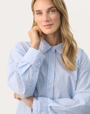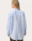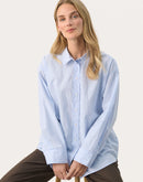 This shirt combines style with timeless versatility through its classic stripes and cool, loose fit, making it ideal for creating a relaxed yet sophisticated look. Perfect for styling with your favorite pants or skirt and adding a touch of classic coolness to your everyday.