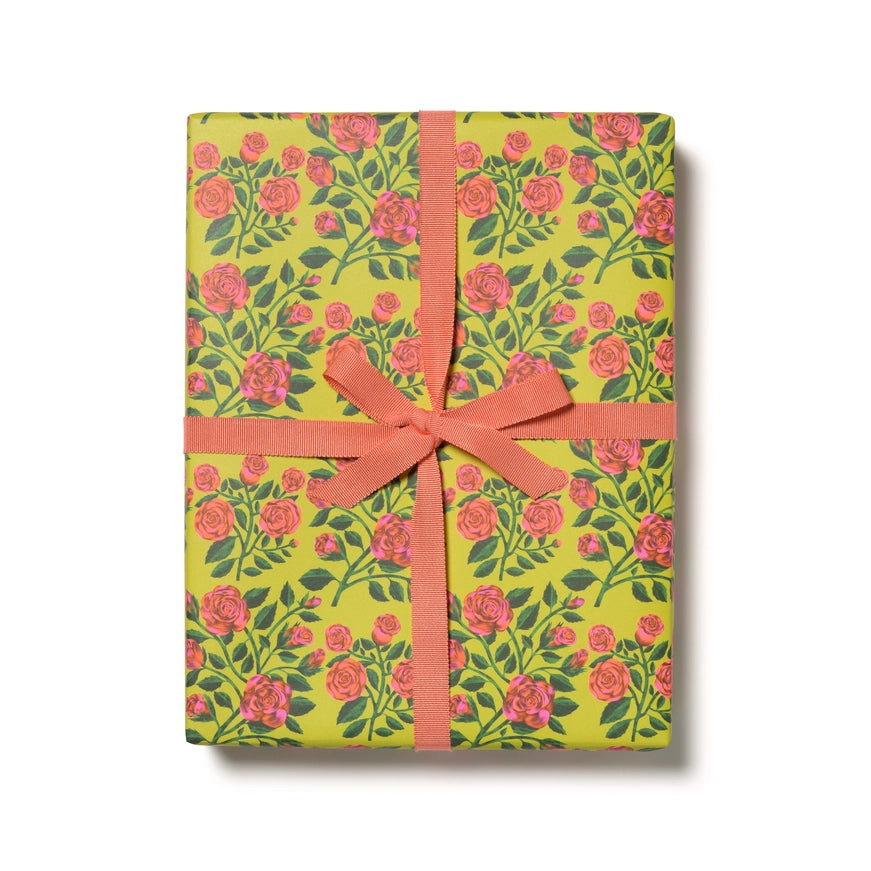 3 sheets rolled and sealed together in cellophane (without a cardboard core). Illustrated by Krista Perry. Printed by Red Cap Cards in Los Angeles, California, USA, on recycled paper.
