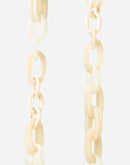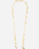 Amber phone chain in beige resin, 120 cm long, clips onto our ring cases or our universal adapter with its rotating carabiners. Its plus points? Its engraved LCF medal, its transparent links and their play of light.