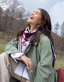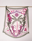 The Tiger in the Palmeraie scarf reveals an exotic print where a tiger hides in the heart of a lush jungle. With its bold patterns, it adds a touch of sophistication and exotic flair to your winter looks.